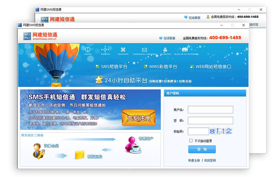 本軟件為綠色軟件,直接下載到桌面,點擊運行,操作極其簡單。 主要功能: 1、短信群發單發; 2、節日祝福、企業內容通知、客戶群發、廣告短信群發; 3、客戶手機號碼管理,分組歸類; 4、對客戶管理的用戶指定單個或多個號碼發送短信。 5、支持用戶號碼數據導入或導出備份; 6、短信發送日志查詢; 7、短信接收日志查詢; 8、用戶短信回復自動在線提醒; 9、Excel短信工資條 [說明] ; 10、在線網銀充值; 11、發票在線申請。